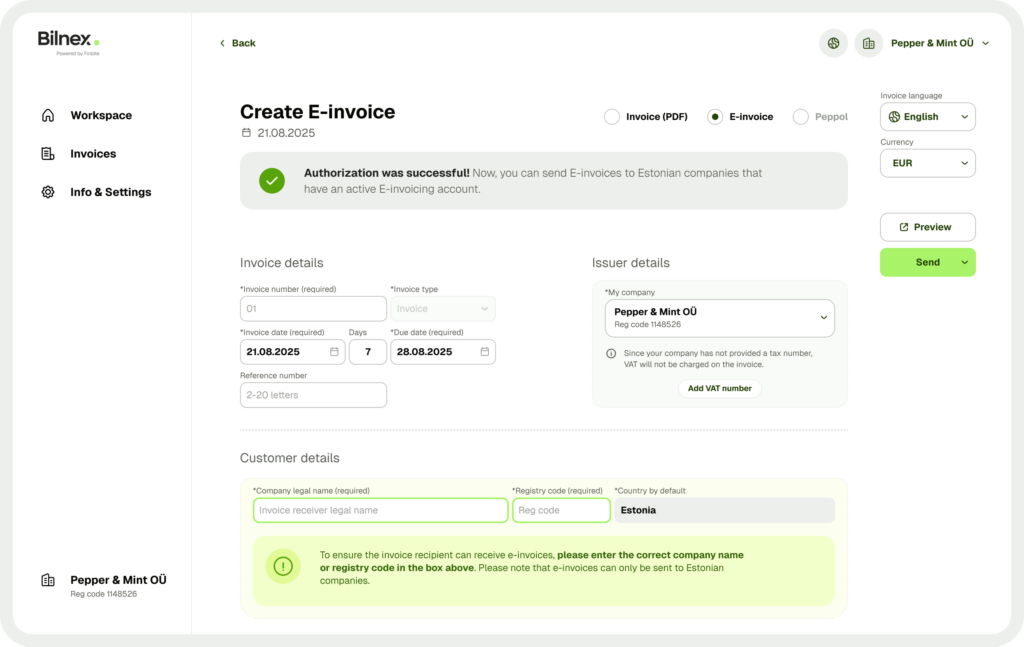 “Due to the e-invoice legislation that came into effect in Estonia on July 1, 2025, we are now seeing many small businesses in situations where they must send e-invoices because their buyer requires it. Unfortunately, there hasn’t been a simple and affordable solution for this. We see a strong need for a tool like Bilnex,” adds Veskiväli. According to him, small businesses deserve the same quality tools as large enterprises – just in a different format. “Speed, simplicity, and zero cost should not be the exception here, but the standard,” says Veskiväli.