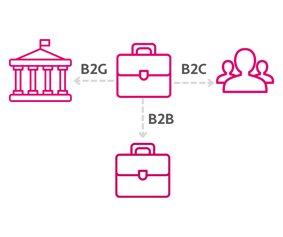 Существует три основных типа электронных счетов — B2B, т. е. электронные счета от бизнеса к бизнесу, B2G, т. е. электронные счета от бизнеса к правительству, и B2C, т. е. счета, отправляемые компанией конечному потребителю (например, электронные счета банку). Регулирование электронных счетов на национальном уровне обычно начинается с изменений для государственного сектора, а затем распространяет требования на частный сектор.