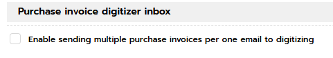 Настройка включена: несколько PDF-файлов могут быть отправлены для оцифровки в одном электронном письме. Один PDF-файл может быть отправлен на оцифровку одним электронным письмом. Система рассматривает каждый PDF-файл как отдельный счет. Содержимое письма или другие документы из письма (файлы Word, CSV, изображения и т. д.) не будут прикреплены ни к одному счету.