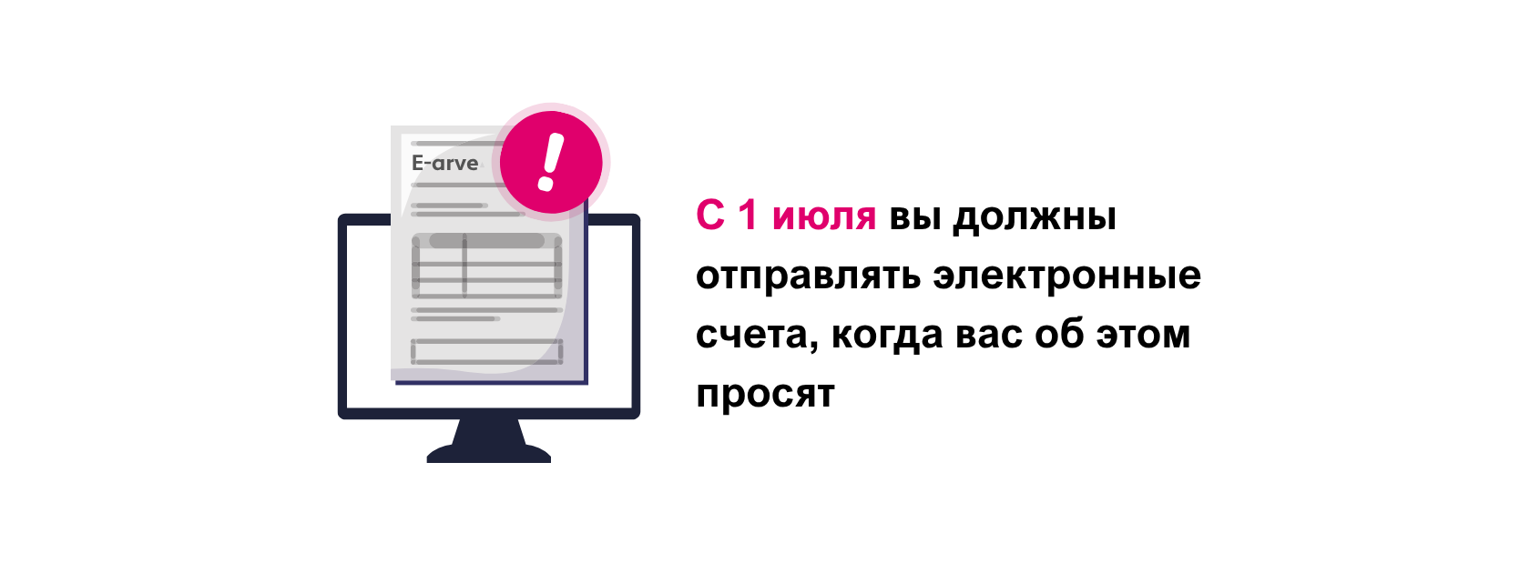 Если ваше предприятие включено в реестр получателей электронных счетов, вы имеете право требовать от своих продавцов электронные счета. Другими словами, изменения в законе предполагают, что электронные счета станут форматом по умолчанию, а не PDF. Однако мы также рекомендуем вам отдельно уведомить всех своих партнеров и поставщиков, если вы ожидаете, что они будут получать электронные счета в будущем. Для этого мы создали шаблоны уведомлений, которые вы можете адаптировать под свой бизнес.